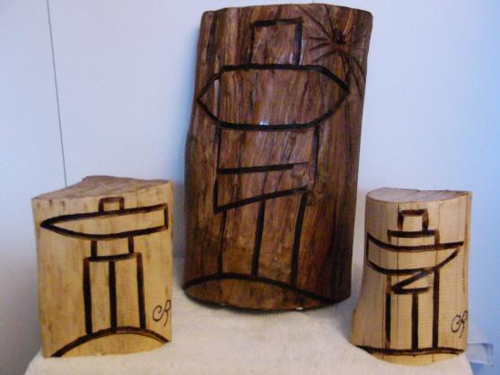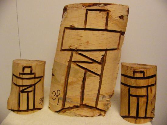 de la construction d’un Inukshuk sur bois, Claude Roussel utilise